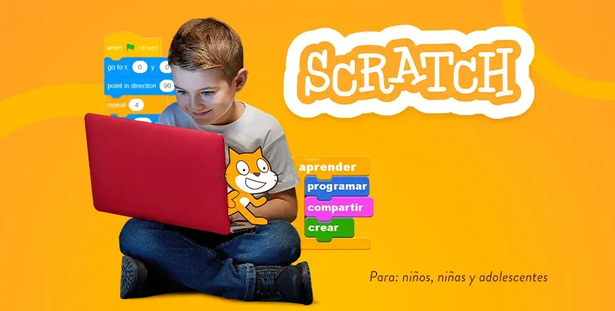 Este es un curso dirigido a niños y niñas interesados en la programación, con Scratch aprenderán fundamentos básicos e interactuarán en una interfaz dinámica permitiéndoles la creación de videojuegos y animaciones de su propia autoría.